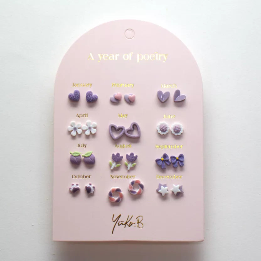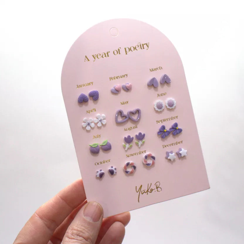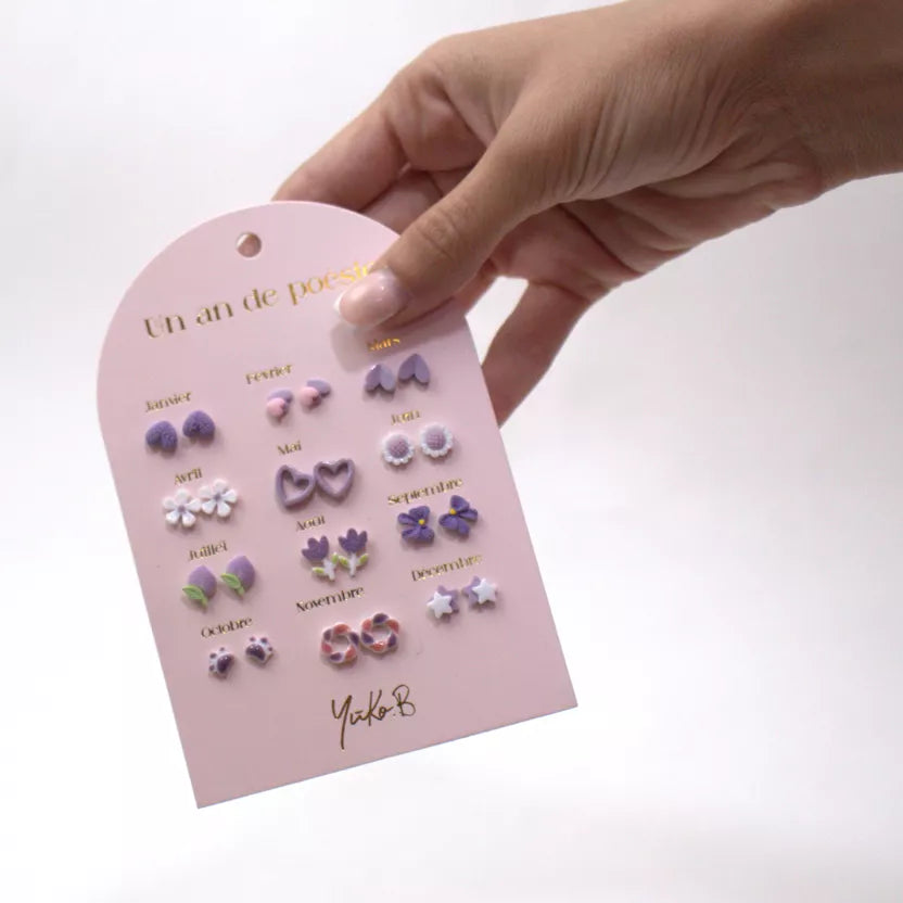 Ontdek deze nieuwe collectie oorbellen. Deze kaart bevat 12 paar oorbellen voor gaatjes, perfect om het hele jaar door af te wisselen.