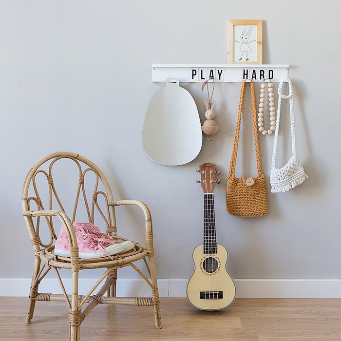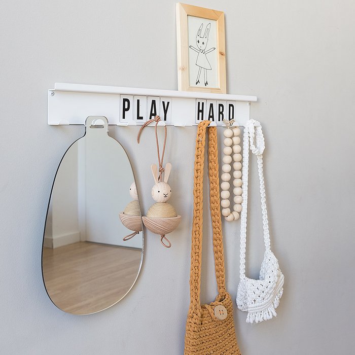 Hippe zilveren acryl spiegel in ei-vorm.