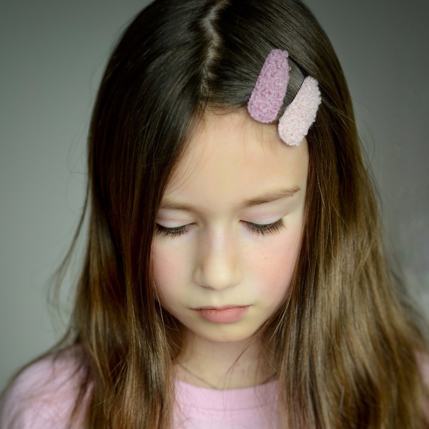 Superlief setje meisjes haarspeldjes in teddy stof.